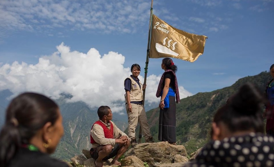 “The long, tough trails we travelled represent the hard task ahead of achieving zero hunger. But when people work together, zero hunger can be achieved,” said Nimdoma. “I raised this flag here in the Himalayas for Nepal, for WFP and for all the world.”