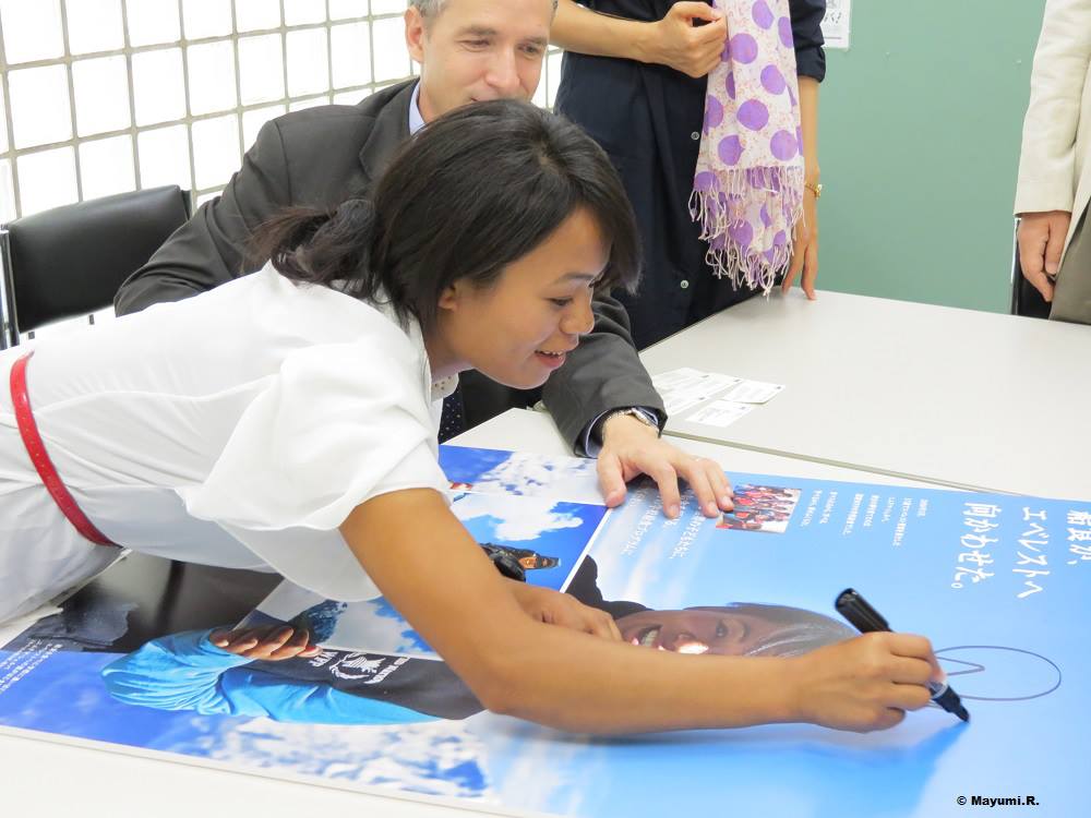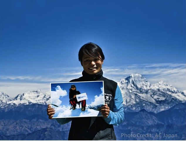 A new advertising campaign for WFP’s School Feeding Programme featuring Nimdoma Sherpa, a former WFP school meals recipient who climbed the world’s highest peak, Mt. Everest, at the age of 17, officially kicked-off in Japan this month.